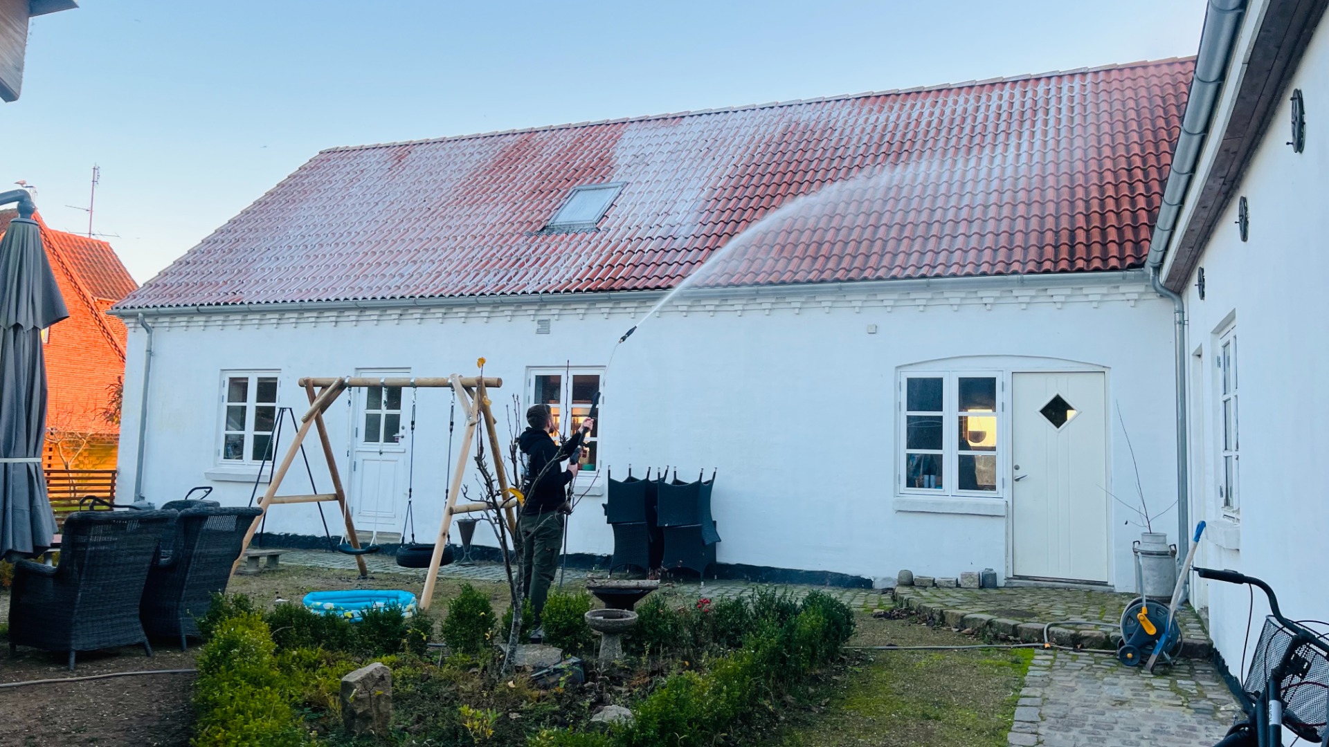 Skånsom og effektiv algebehandling af tag beskytter tagbelægningen mod mos og algevækst uden at bruge højtryk, der kan skade materialet. Behandlingen forlænger tagets levetid, giver et pænere udseende og passer perfekt til de typiske tage i Lolland-Falster området.